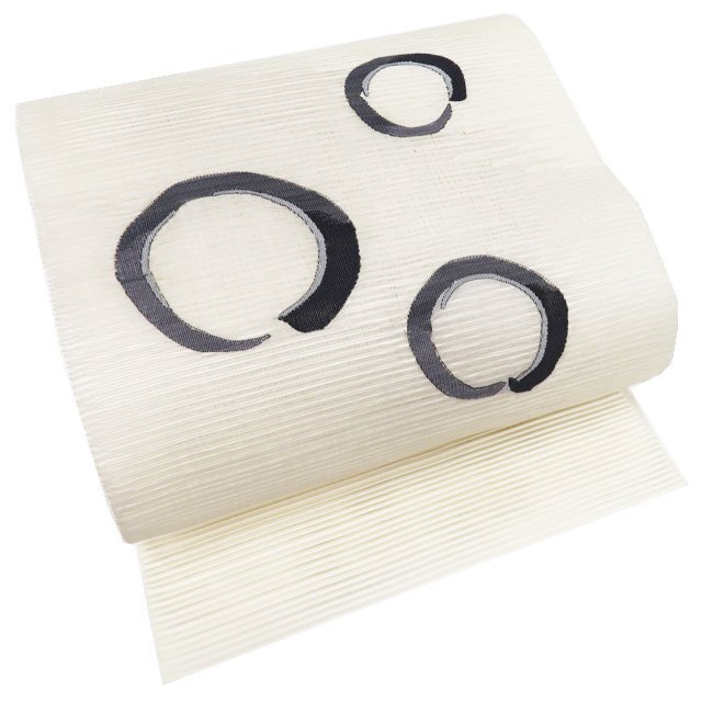 - 夏物 夏帯 名古屋帯 なごや帯 中古 リサイクル 正絹 カジュアル 仕立て上がり 綴れ 丸紋 生成色 多色 きもの北條 A1268-17