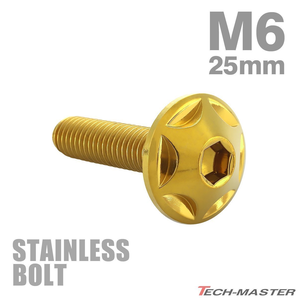 - M6×25mm P1.0 ボタンボルト スターヘッド ステンレス ゴールド カウル スクリーン フェンダー 車 バイク カスタム 1個 TR0026