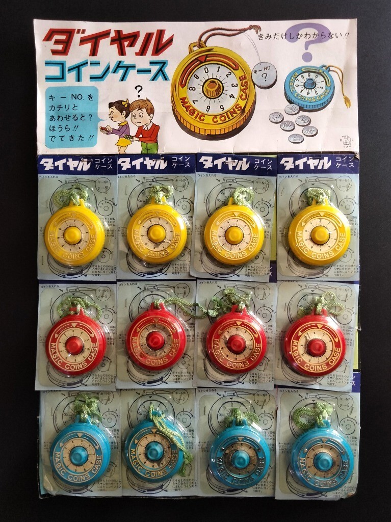 > マジック コインケース ふしぎ 貯金箱 手品玩具 未使用 12個 台紙付きセット !! ☆ パチ ダイヤル型 小銭入れ 懐中時計 駄玩 昭和レトロ