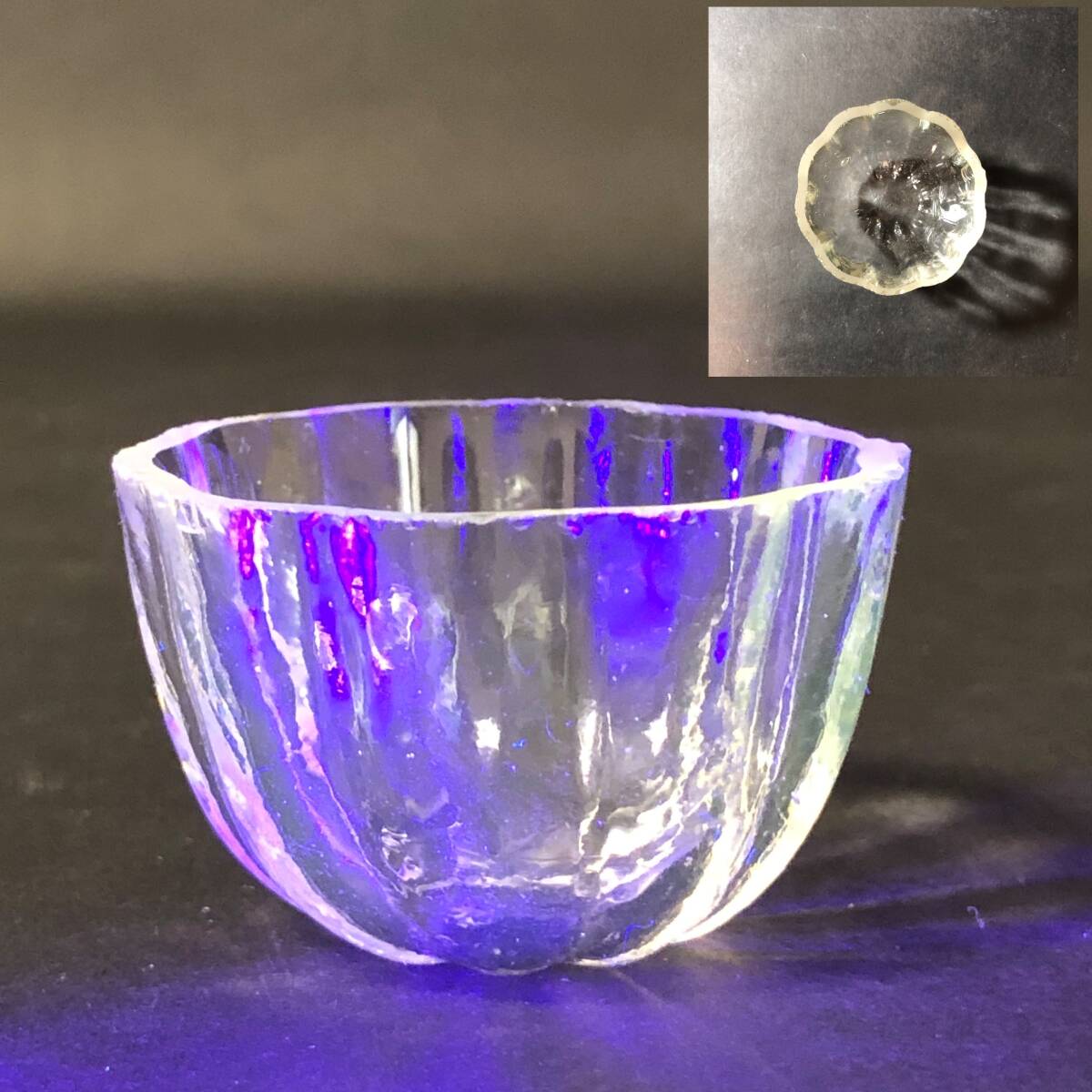 - 江戸明治期 ガラス 菓子型ガラス 菊花型 ウランガラス ペロペロ 型押しガラス ガラス雑貨