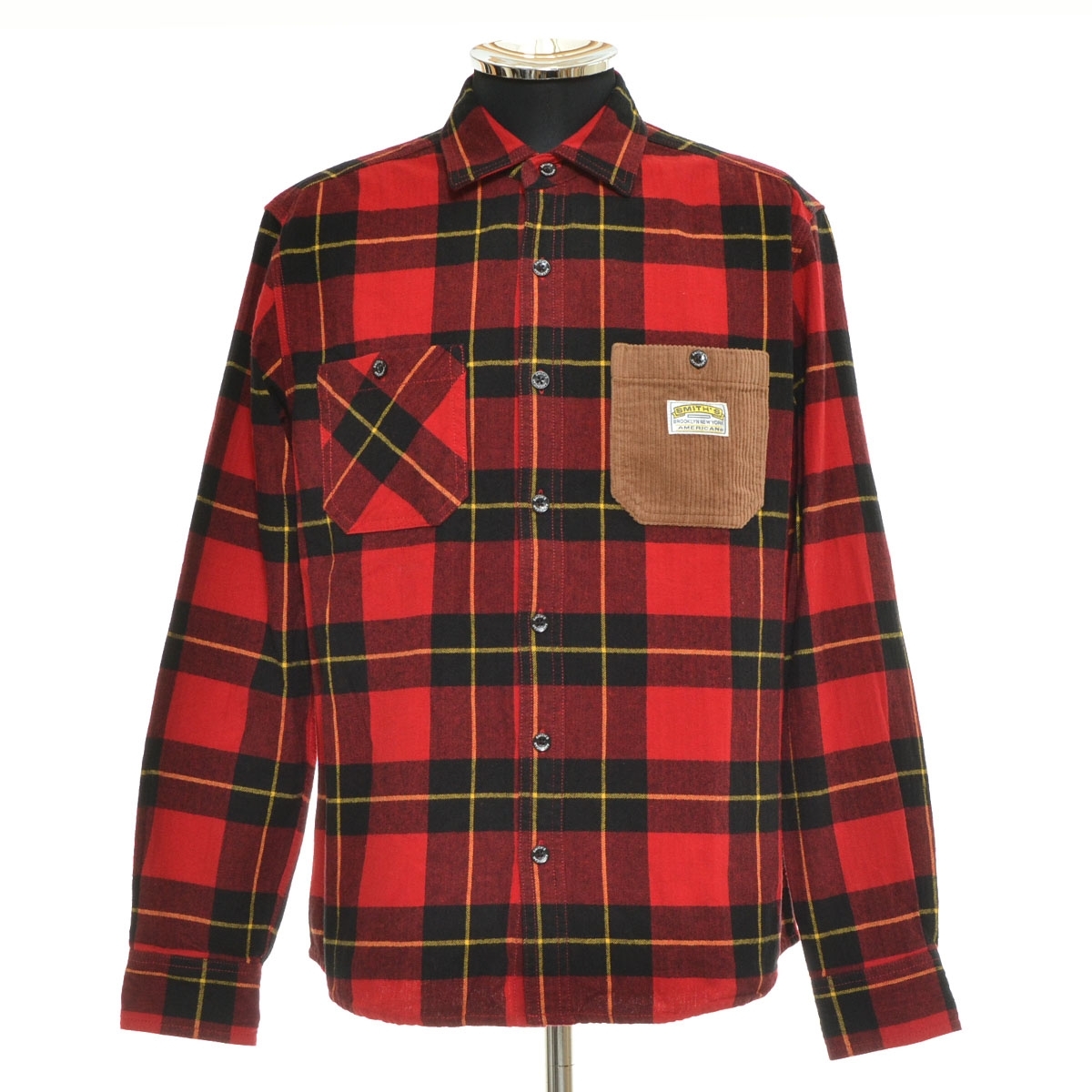 - ●563304 SMITH'S AMERICAN スミス アメリカン ●チェックシャツ 長袖 コーデュロイポケット サイズM メンズ レッド