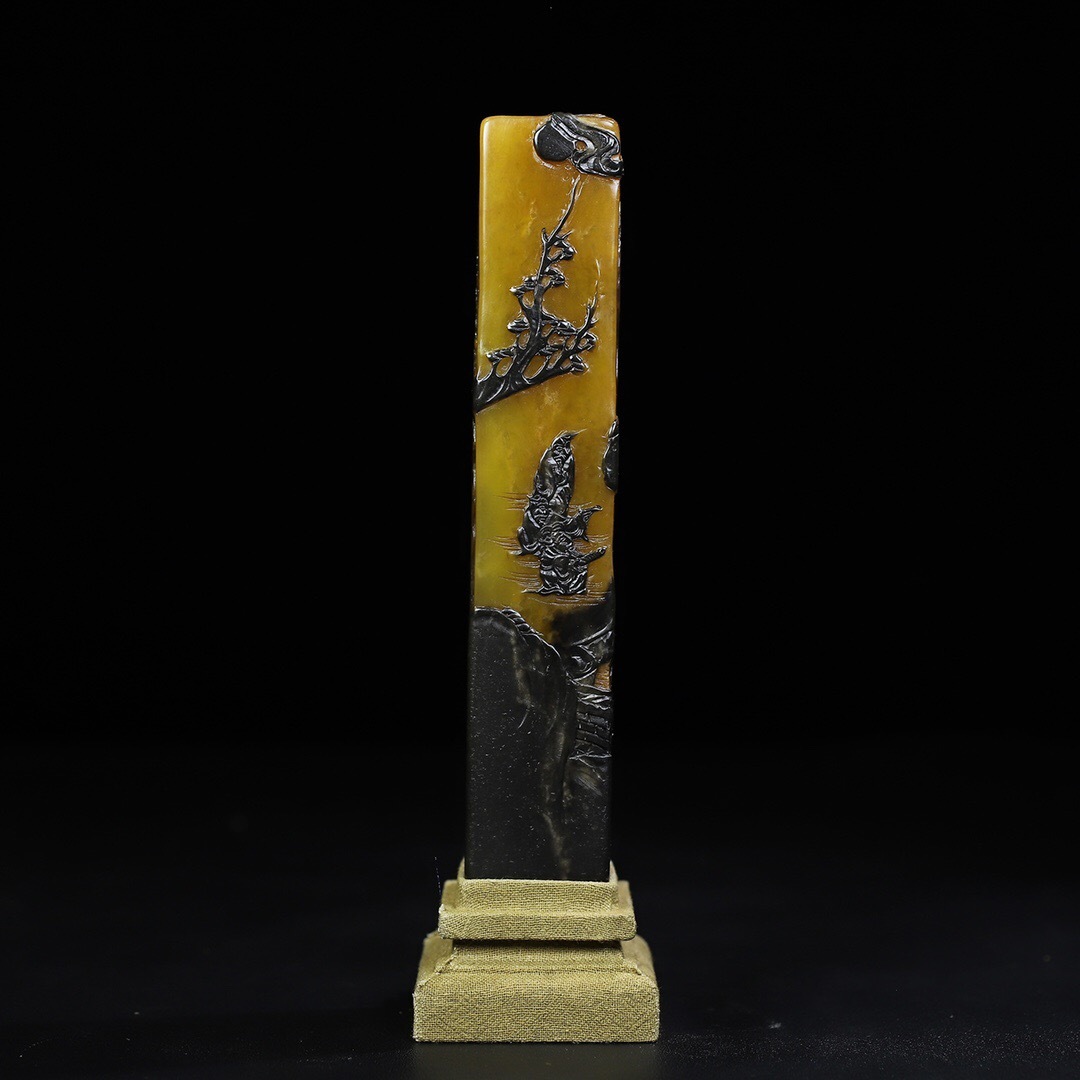 - 【超珍館蔵】寿山石 烏鴉皮 田黄石 細密彫 山水人物紋印章 印章 印鑒 文房具 書道品 古賞物 古董品 古美術品 時代物 旧家蔵出 稀少珍蔵品