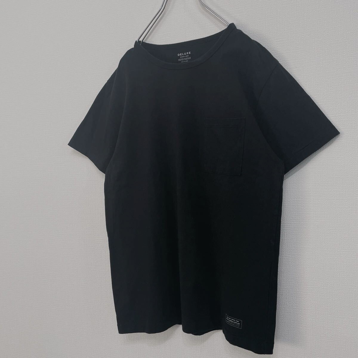 - 【682】DELUXE デラックス ポケットTシャツ 日本製 黒 Tシャツ 半袖 クルーネック ポケ付き ブラック 無地 シングルステッチ