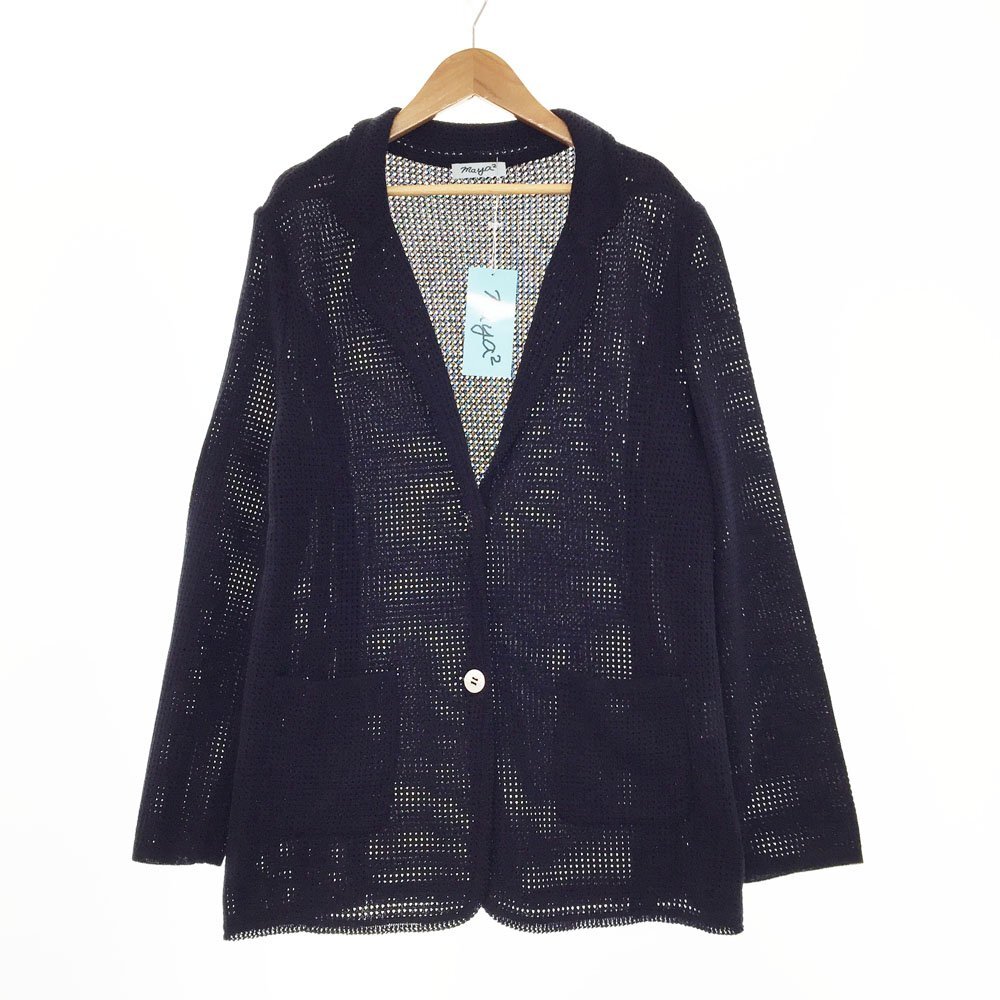 - ★未使用 maya2 マヤツー 長袖 メッシュニット ジャケット 13号 レディース ネイビー カーディガン テーラードジャケット 2BA/93719