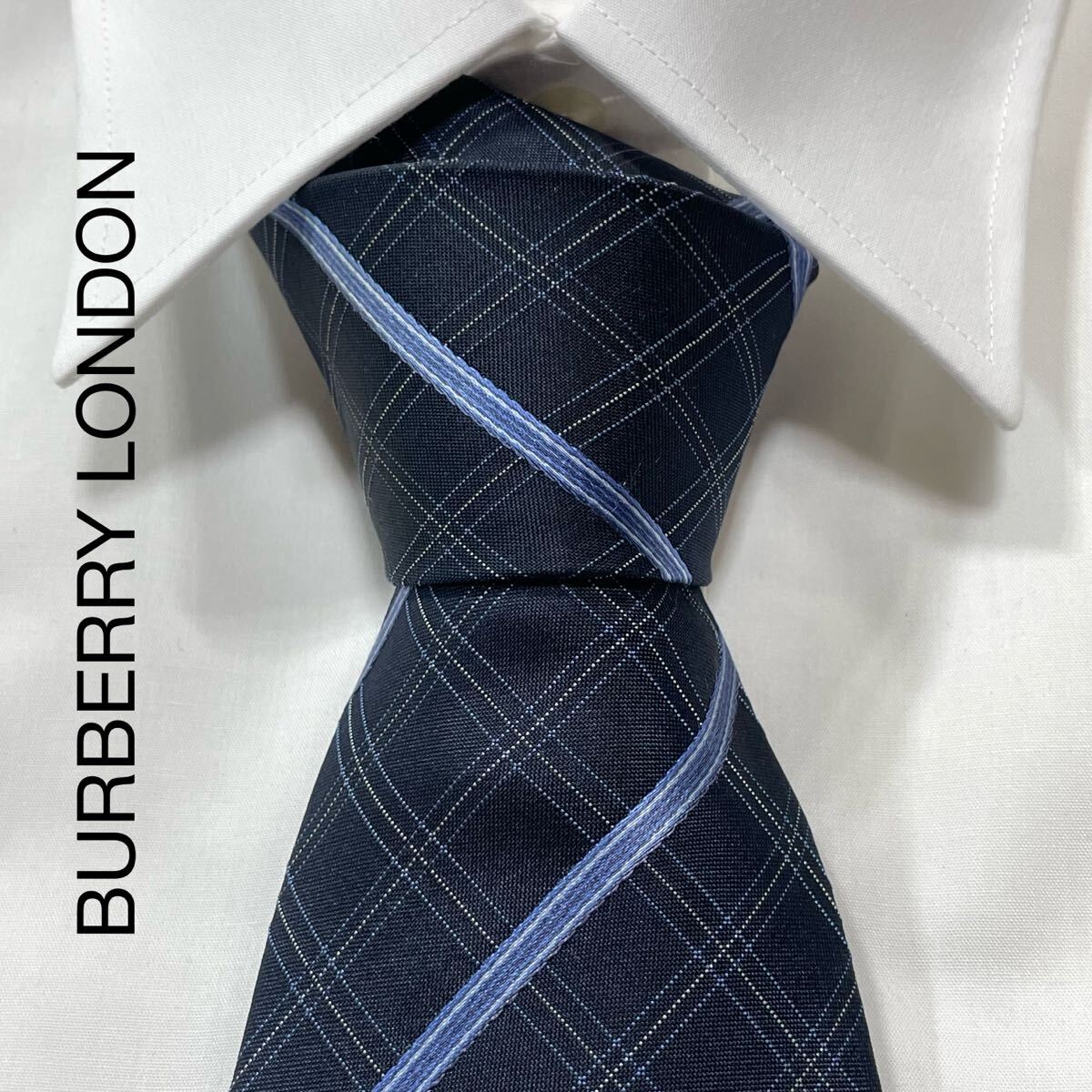 - BURBERRY LONDON バーバリーロンドン チェック ジャガード シルク ネクタイ ネイビー TG2857