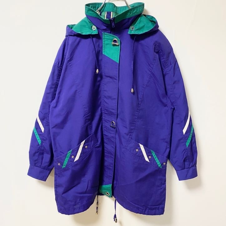 - 古着 used currentseen 長袖ナイロンジャケット ミドル丈 ライトアウター ヴィンテージ 個性的 ブルー Mサイズ