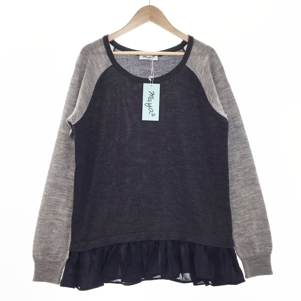 > ★未使用 maya2 マヤツー 長袖 クルーネック 裾フリルニット プルオーバー 11号-13号 レディース ネイビー×グレー チュニック 1BB/93732