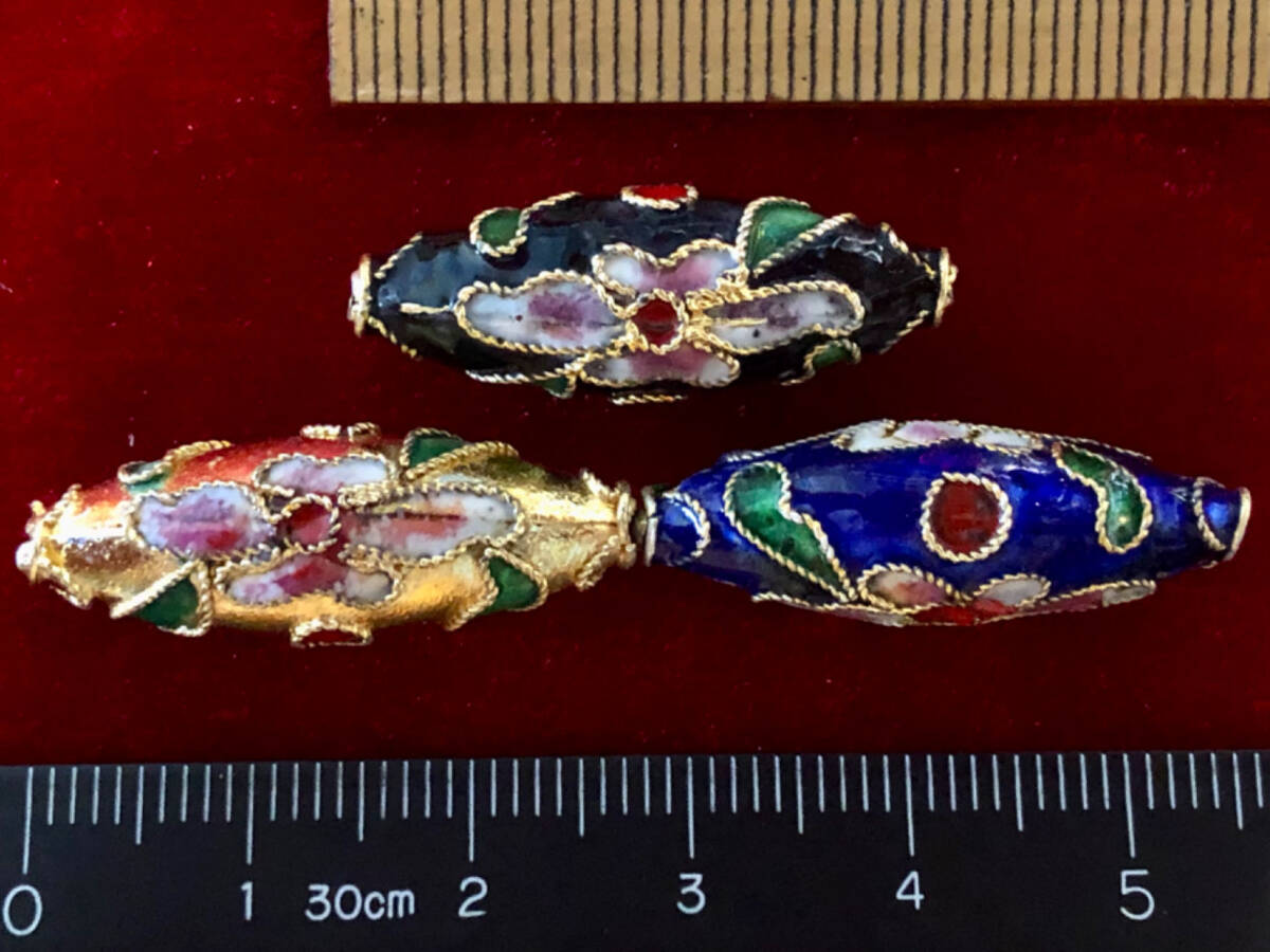 - ¶!¶ 有線七宝焼ワールド - 3色細長楕円大玉で1単位 ¶!¶ 約Φ10㎜×長27㎜大玉 金線に三色釉ピンク花 手作 手芸 工芸 インテリア 趣味