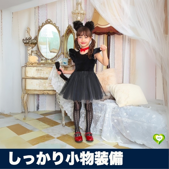 - 【しっかり小物装備】コスプレ衣装 クリアストーン 黒猫ワンピース キッズ 仮装3点 人気 おすすめ