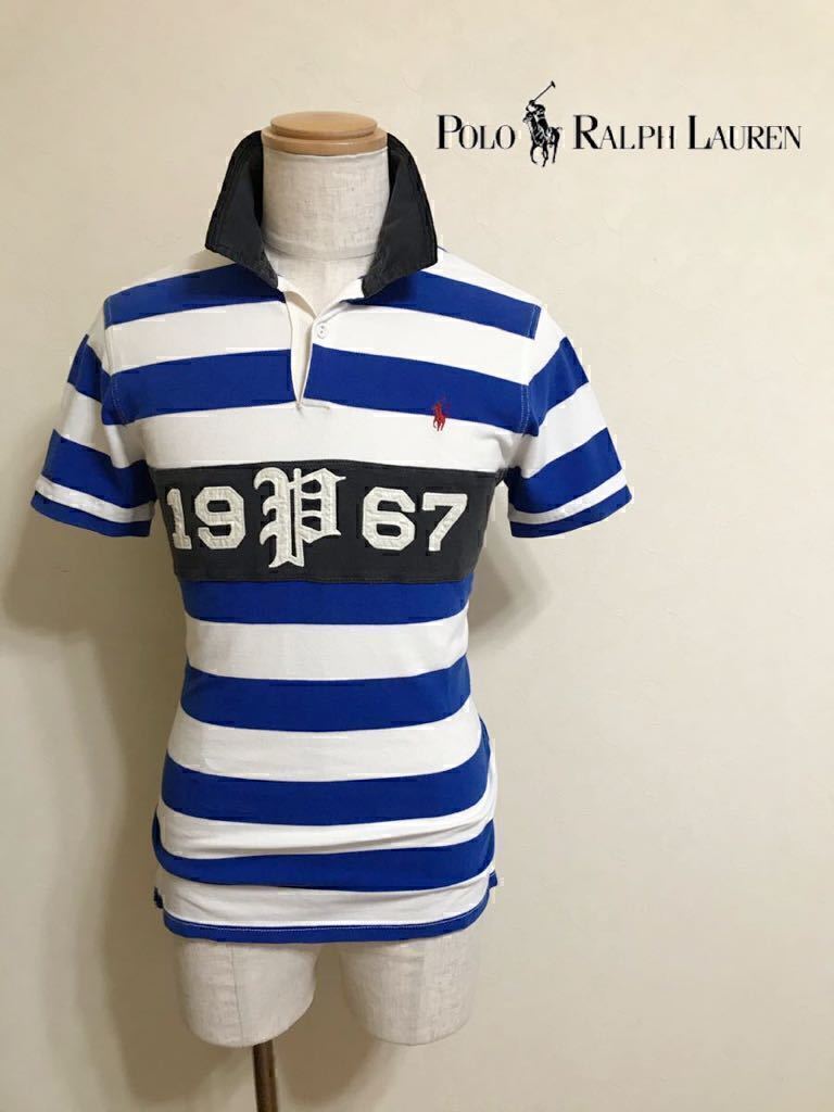 - Polo Ralph Lauren ポロラルフローレン カスタムフィット ボーダー 鹿の子 ラガーシャツ ポロシャツ トップス サイズM 175/96A 半袖 青白黒
