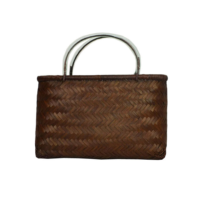 - 竹製 市場かご よこ型L ブラウン 横長 竹かごバッグ 籠