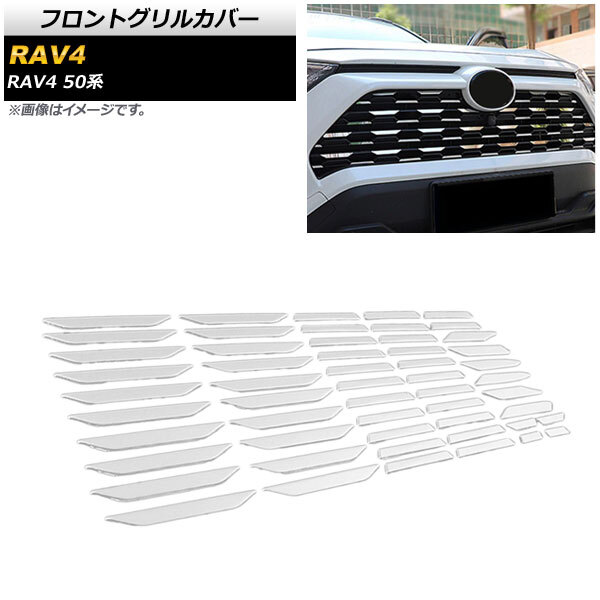 > フロントグリルカバー トヨタ RAV4 50系 Z package/G/X/HYBRID G/HYBRID X 2019年04月~ 鏡面シルバー ステンレス製