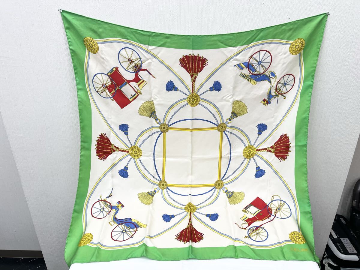 - CELINE セリーヌ スカーフ 馬車柄 グリーン系 〇ちょっと訳ありです...