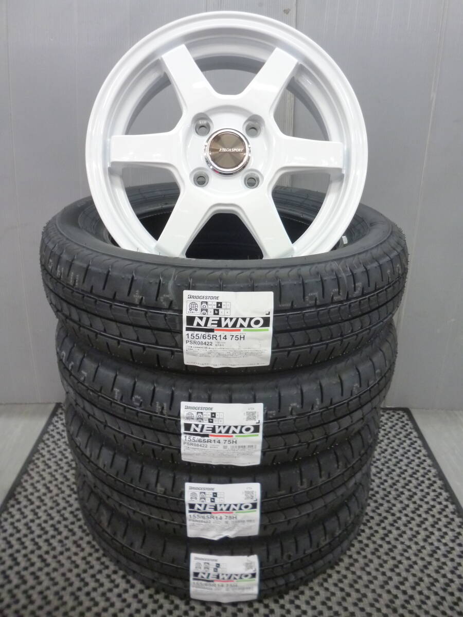 - 新品セット★S-6ホワイト★ブリヂストンニューノ155/65R14★軽自動車,ワゴンR,ラパン,ミラ,タント,ウェイクス,ペーシア,Nボックス