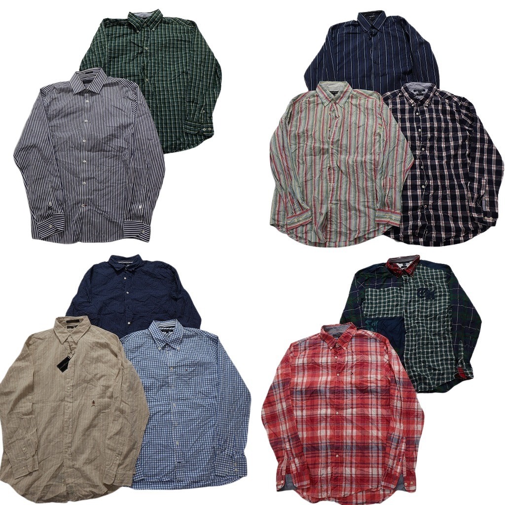 - 古着卸 まとめ売り トミーヒルフィガー 長袖シャツ 10枚セット (メンズ L ) ストライプ マドラスチェック ギンガム NB8122 1円スタート