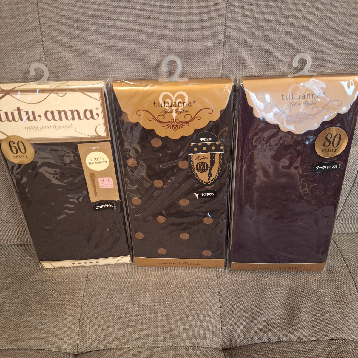 - タイツ 80デニール M L ブラウン パープル 60デニール
