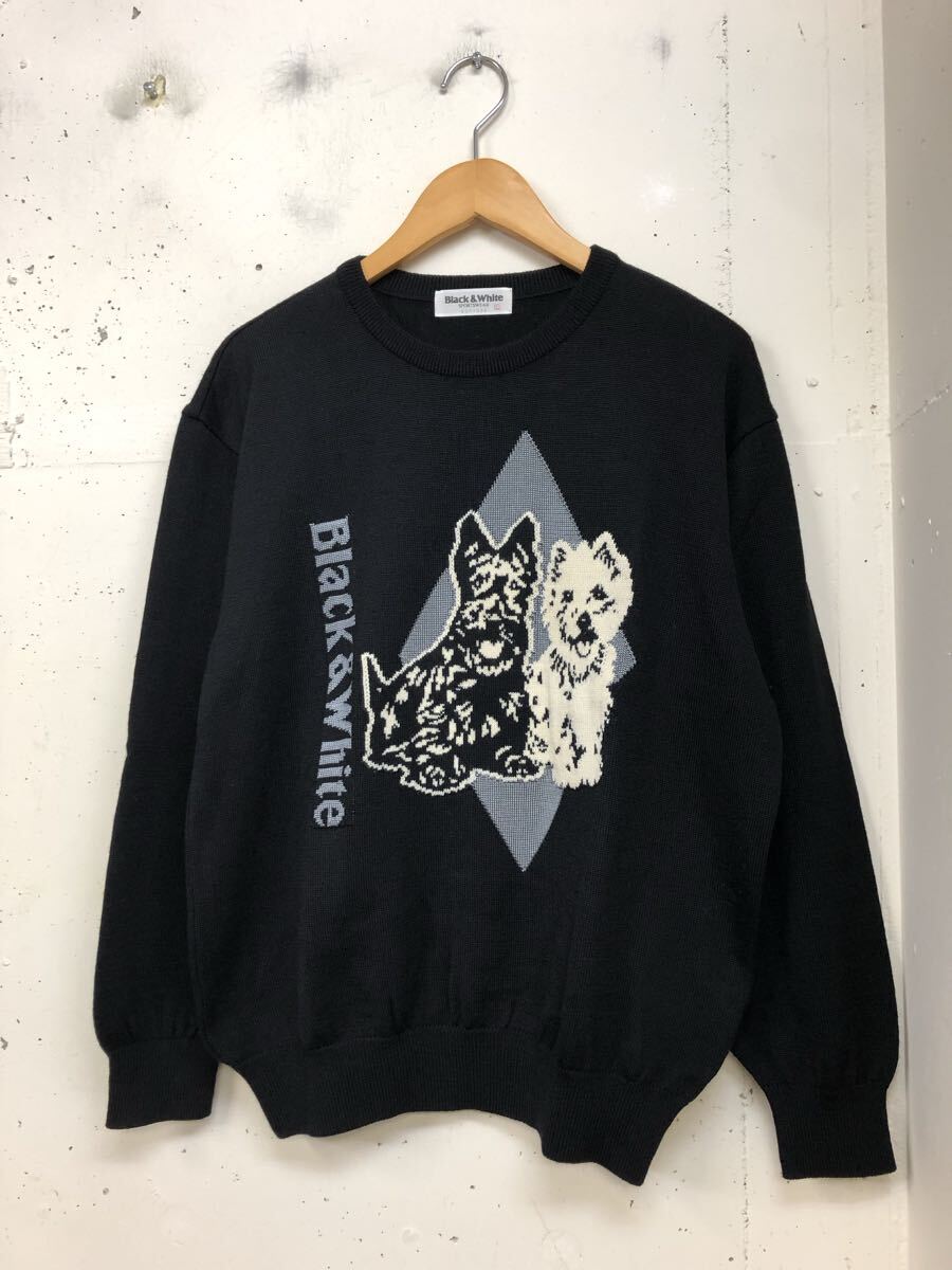 - 【美品】 BLACK&WHITE ブラック&ホワイト ゴルフ 秋冬 ドッグ ビッグロゴ ウール ニット セーター Sz.L メンズ 日本製 ゴルフウェア