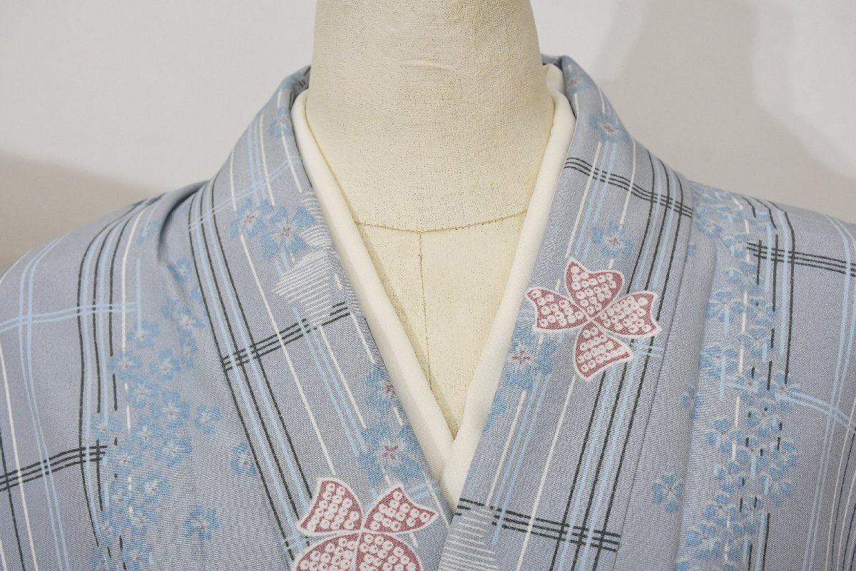 - 小紋 着物 単衣 洗える着物 花 縞 身丈157cm 裄丈66cm ★ kb-7166 桜庭呉服店