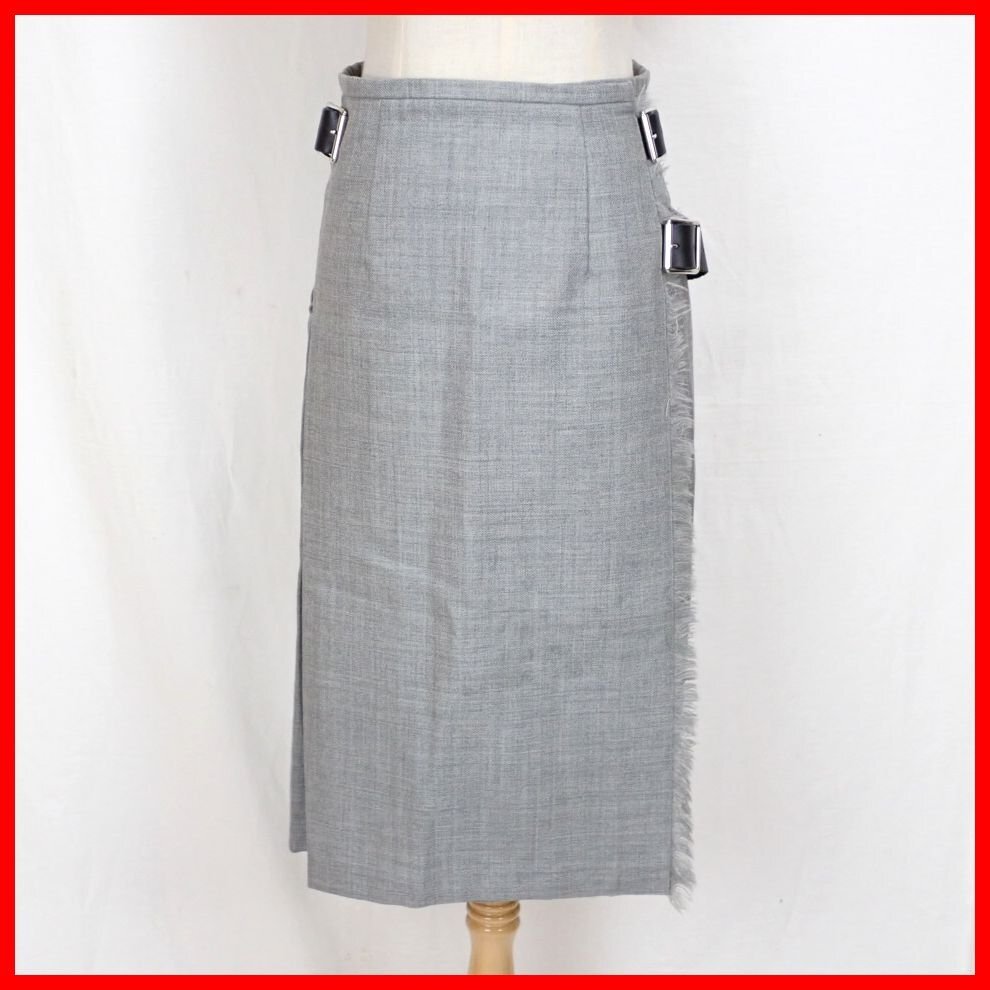 > ★O'neil of Dublin/オニールオブダブリン プリーツラップスカート 8/S相当/ミモレ丈/杢グレー/ウール100%&1374500097