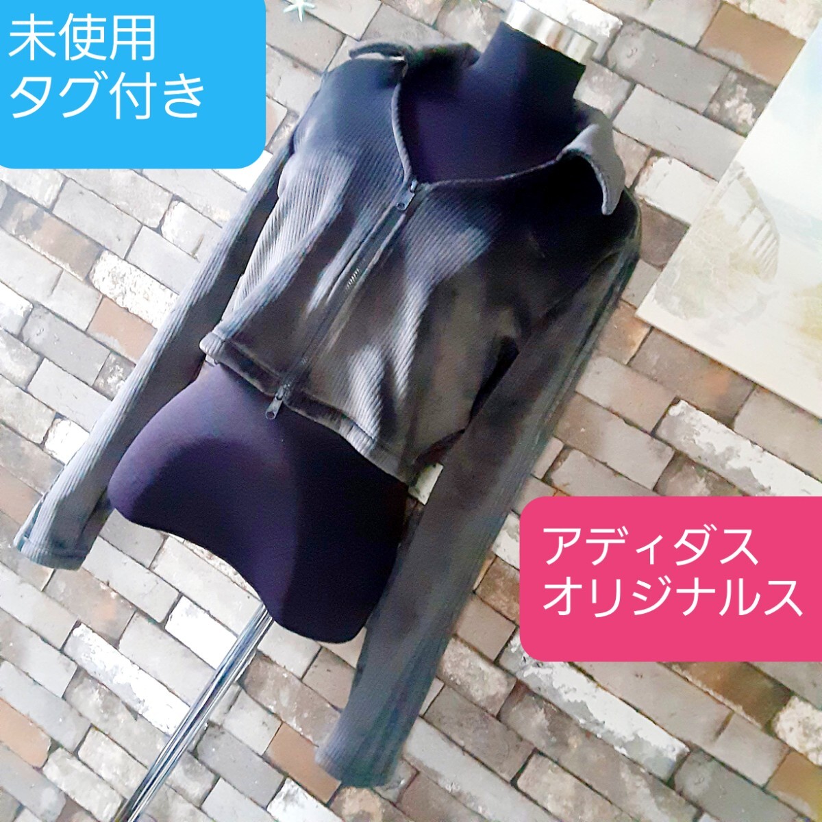 - ジップアップ ショート丈 ジャージ ベロア カーキブラック アディダスオリジナルス 長袖 襟付き