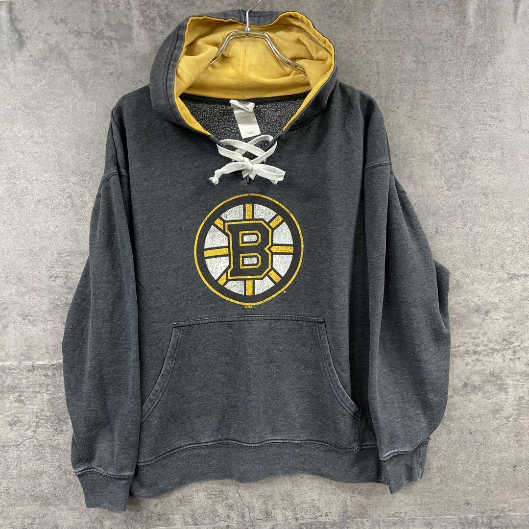 - NHL ボストンブルーインズ 灰色 パーカー ロゴ フーディ XL【5686】