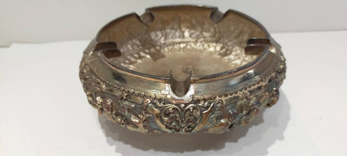 > 無刻印(SILVER950?) BURMA? 銀細工 灰皿 直径16cm シルバー ビルマ ミャンマー Myanmar 71323