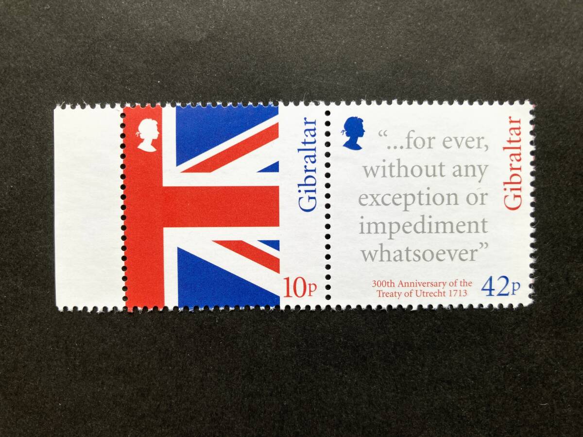 - 外国切手: (イギリス海外領土)ジブラルタル切手 「ユトレヒト条約 300年」2種連刷 未使用