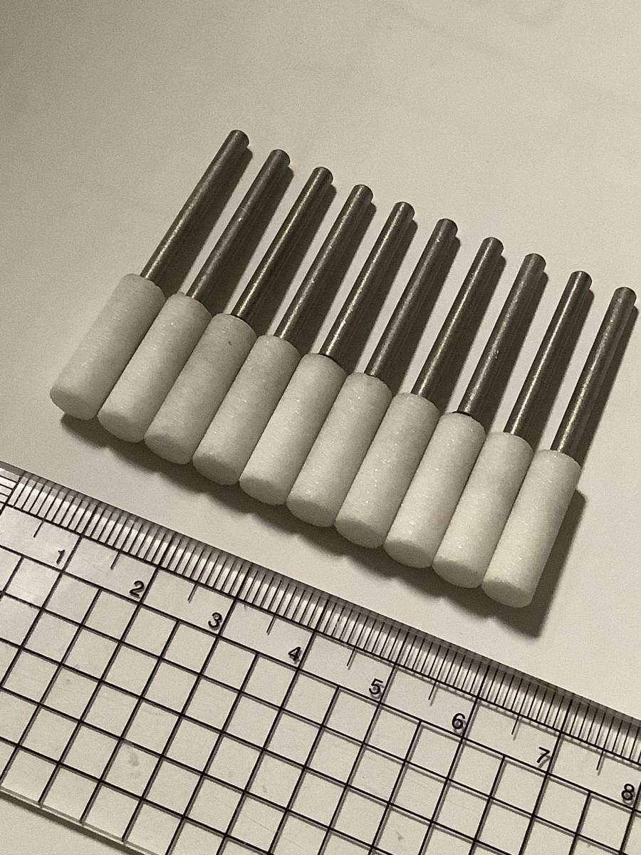 > エフエスケー FSK製 軸付き砥石 未使用新品 10個 A軸付砥石白色 外径6mm×厚さ19mm×軸径3mm×軸長30mm