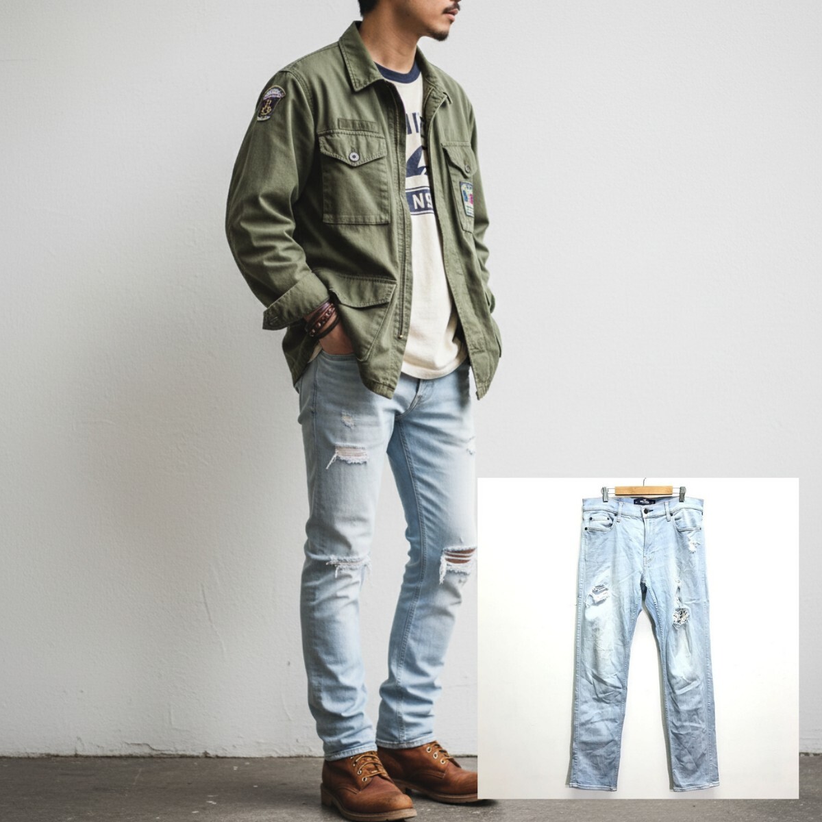 - すっきりシルエット◎【HOLLISTER】ホリスター デニム ジーンズ パンツ スキニー 細身 ストレッチ ダメージ加工 ブルー w33 /Y23484ik