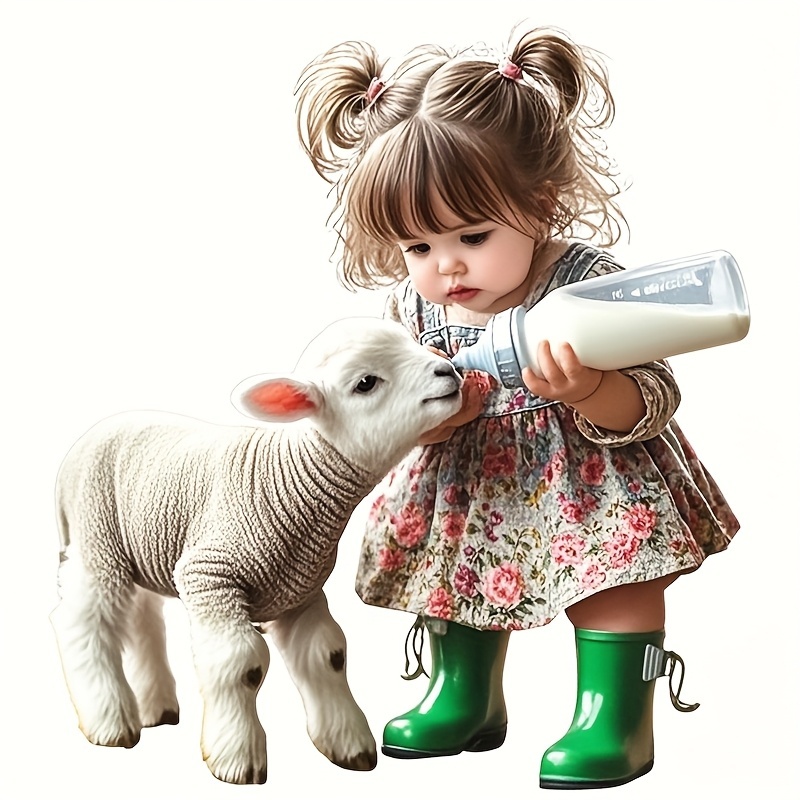 - ステッカー ヤギにミルクをあげる女の子 車用 アニマル 15cm 山羊 動物 ノートパソコン ビニール 貼り付け シール 2D バイク t8478