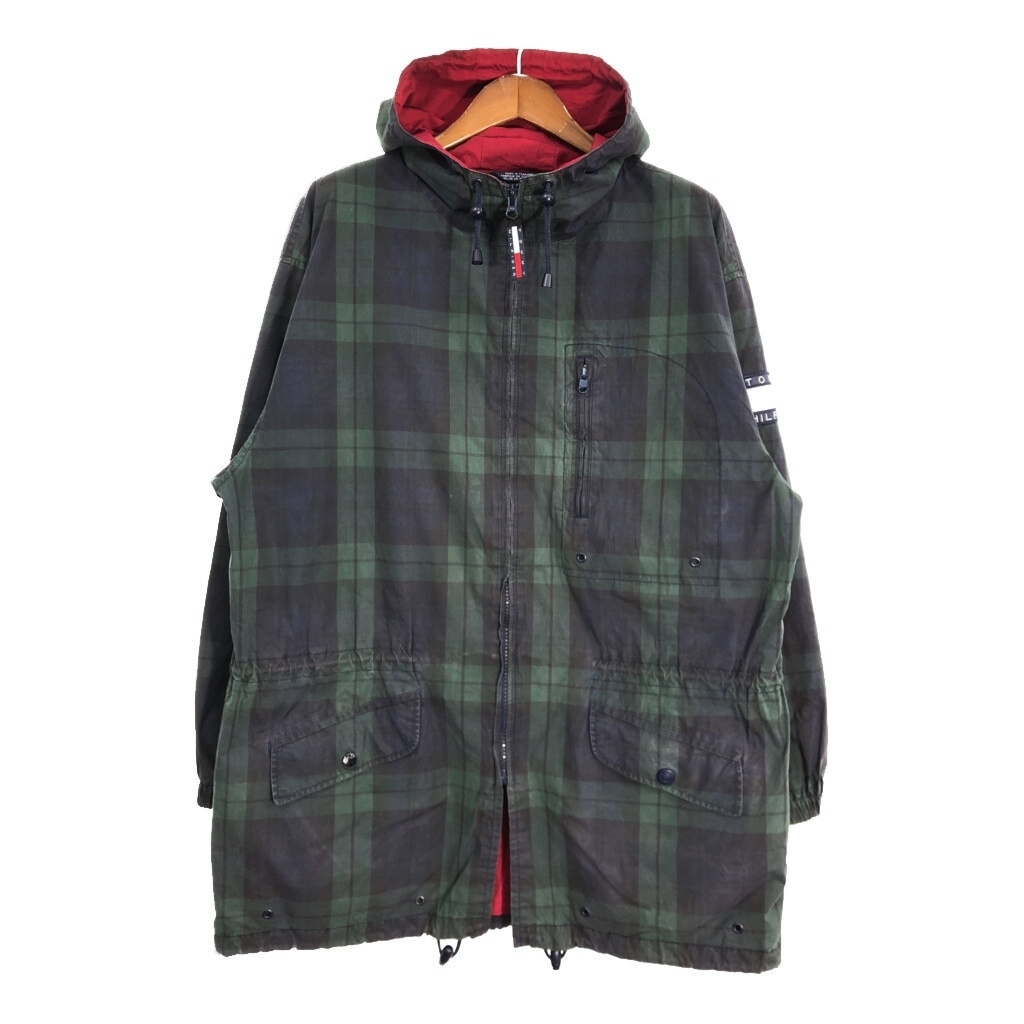 > 90年代 TOMMY HILFIGER トミーヒルフィガー パーカージャケット ブラックウォッチ ネイビー(メンズ XL )中古 古着 T2049
