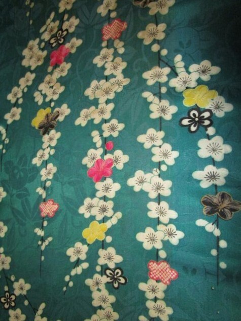 > F-47★緑地*梅*枝垂れ梅*交織*古布はぎれ★吊るし雛/市松人形/一閑張り/文化人形