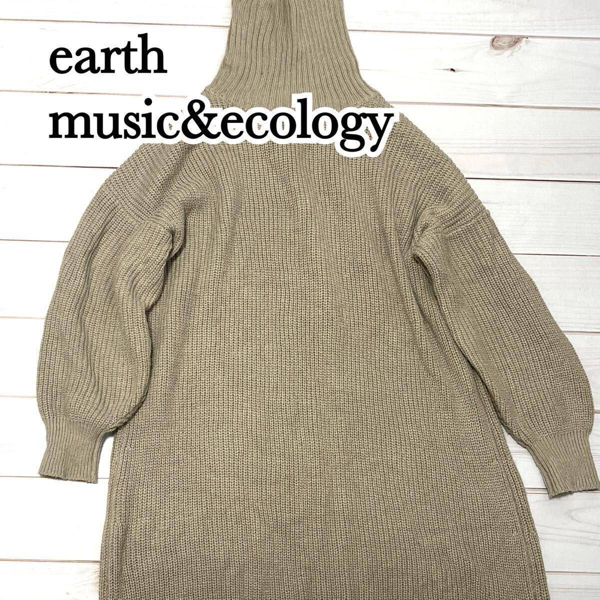 > earth music&ecology アース ミュージックアンドエコロジー ニット ニットワンピース タートルネック ロング丈 大きめ ベージュ F フリー