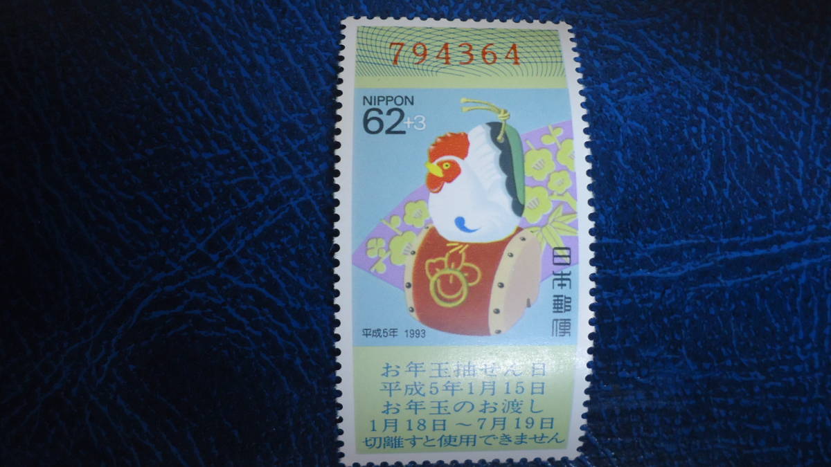 - 年賀切手'93(H5)用 とり 額面62+3円