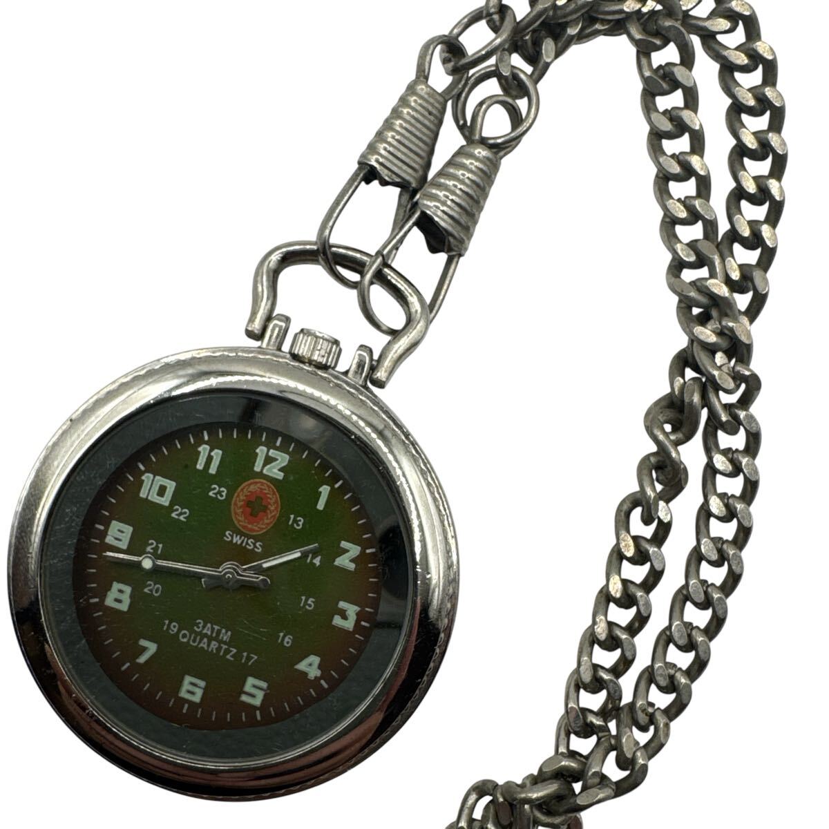 - SWISS クォーツ 懐中時計 チェーン ジャンク