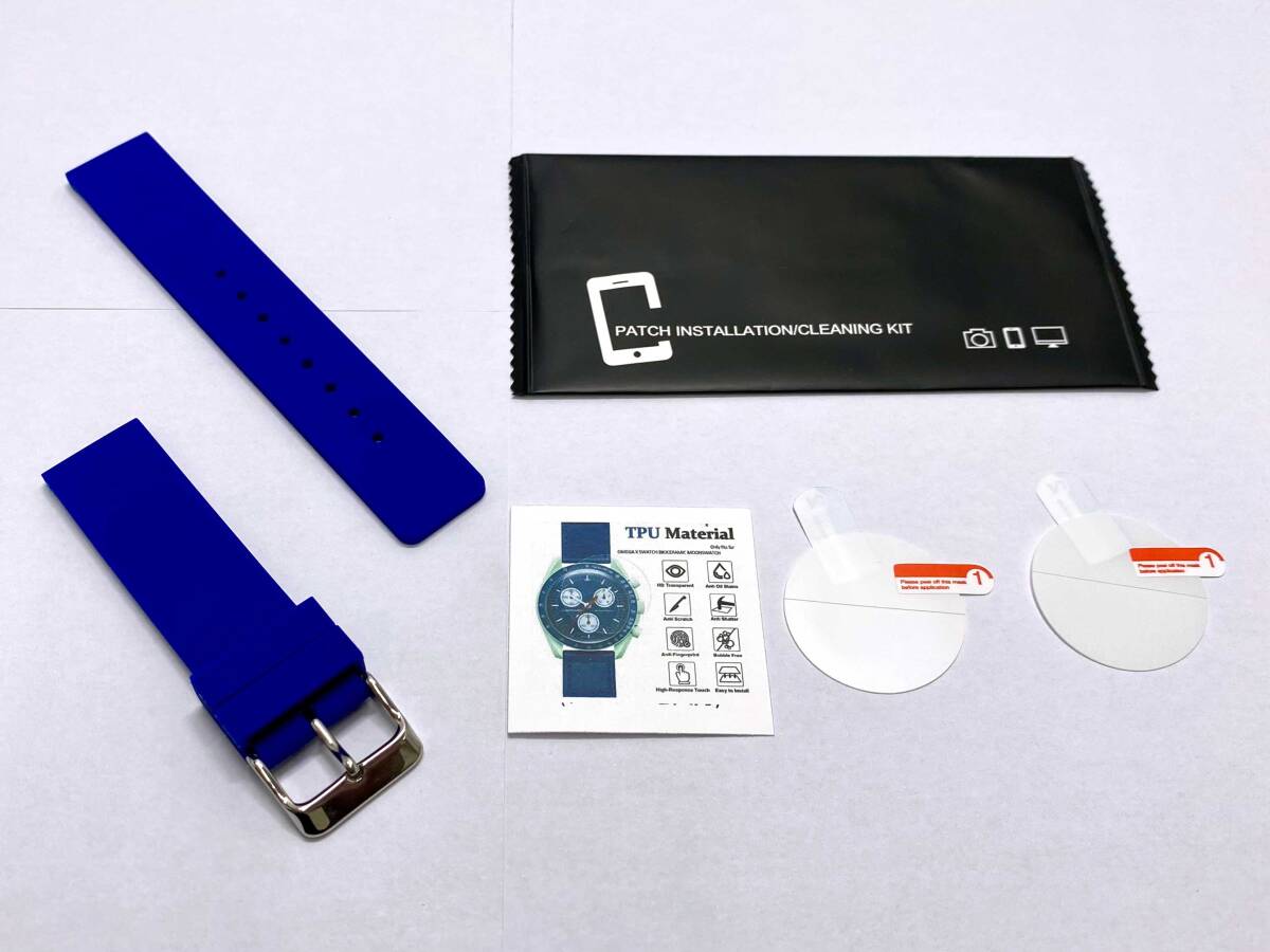 【未使用・修理部品】OMEGA X Swatch オメガ スウォッチ 対応 保護フィルム ラバーベルト セット おまけ-フィルム+1枚/バネ棒2本 / BY-1104