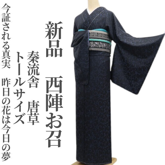 > tomihisa 新品 秦流舎 唐草 着物 正絹“今証される真実…昨日の花は今日の夢”仕付け糸付 トールサイズ 西陣お召 6709