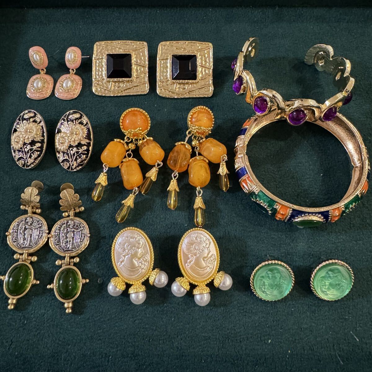 - 32 ヴィンテージ デザイン アクセサリー ブレスレット ゴールド カラフル ピアス まとめ売り まとめて 大量 昭和レトロ