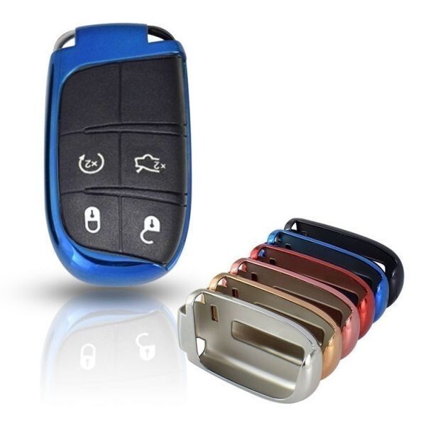 - Jeep ジープ キーカバー メタリック TPU製 ブルー キーケース メッキ チェロキー グランドチェロキー ラングラーなど