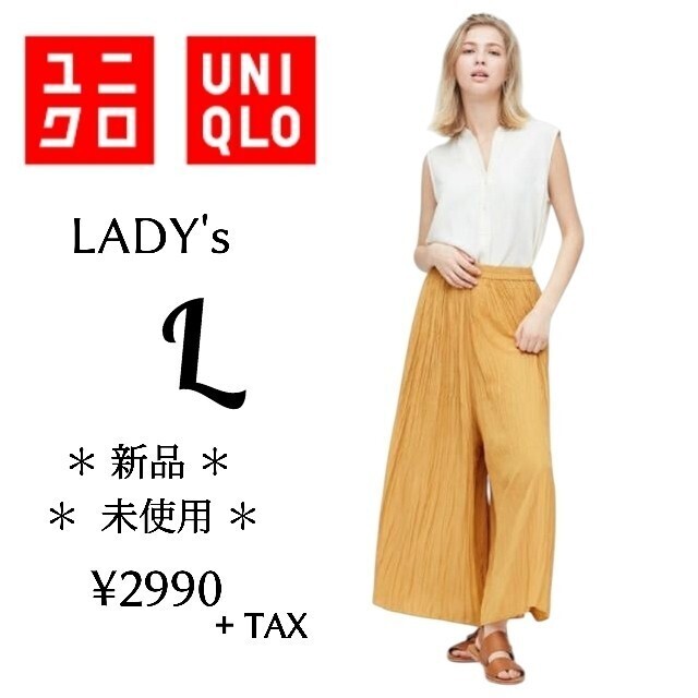 - 送料込み 新品レディースLサイズ UNIQLO ユニクロ ワッシャーサテンスカートパンツ 黄色 ペチコートなし