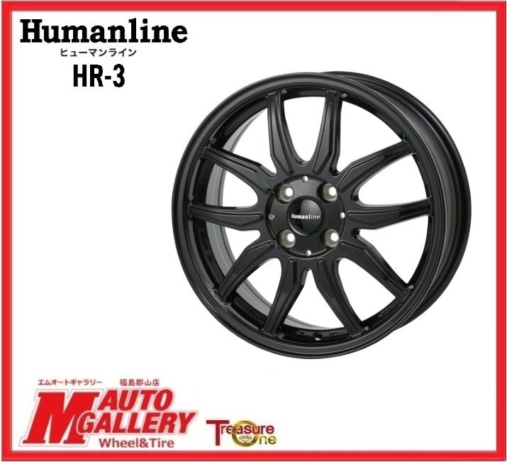 > 郡山店★新品ホイール単品4本SET★ヒューマンライン HR-3 14インチ 4.5J 4H100+45 ブラック★軽自動車全般