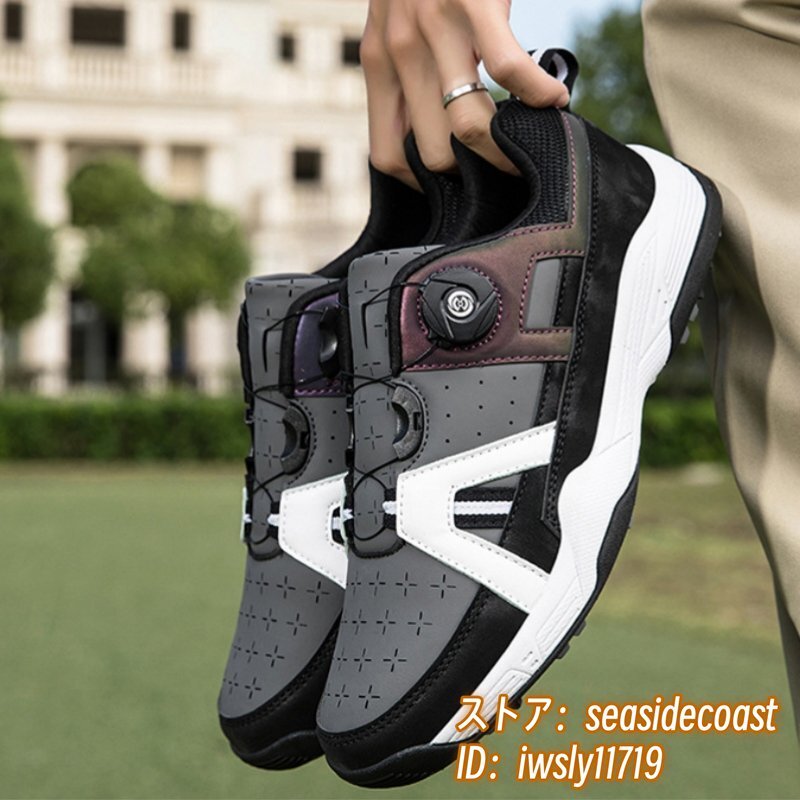 > 高級品 ゴルフシューズ 運動靴 フィット感 スポーツシューズ ソフトスパイク 強いグリップ 軽量 弾力性 通気性 防水 防滑 ブラック 25.0cm