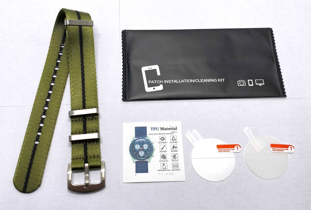 - 【未使用・修理部品】OMEGA X Swatch オメガ スウォッチ 対応 保護フィルム ナトーベルト セット おまけ-フィルム+1枚/バネ棒2本 / BY-1125