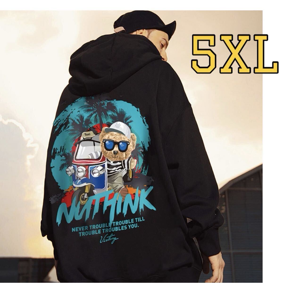 - パーカー メンズ ビッグシルエット 韓国風 ストリート 薄手 トレーナー 裏起毛 黒 5XL 6L クマ