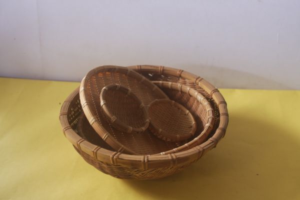 - 天然素材 竹製ザル まとめて5点 竹細工 竹籠 竹編み 深型 浅型 籠 かご /20N9-46