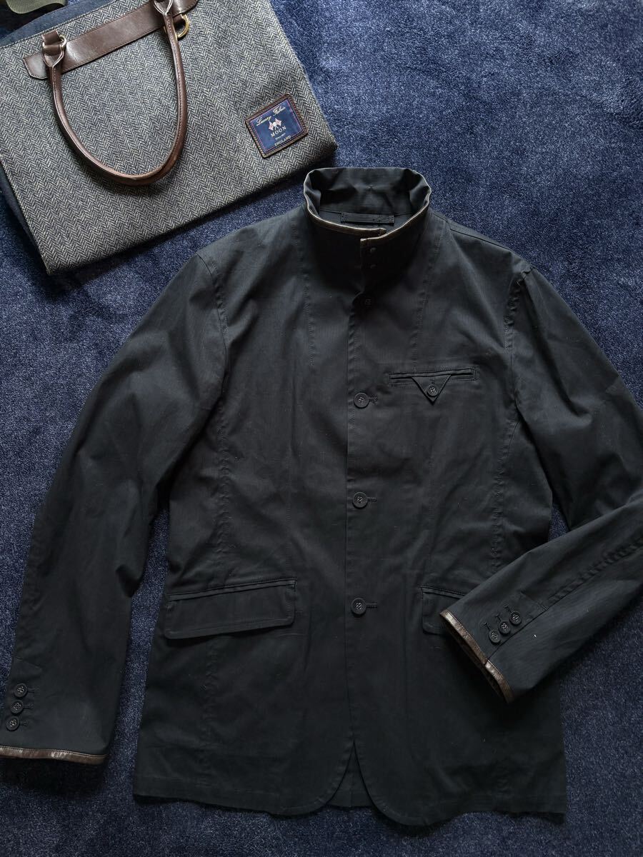 > 超美品 定価32,100円 MEN’S BIGI メンズビギ 高品質ストレッチ素材 襟スタンドカラー お洒落ジャケット size04(L) ブラック系