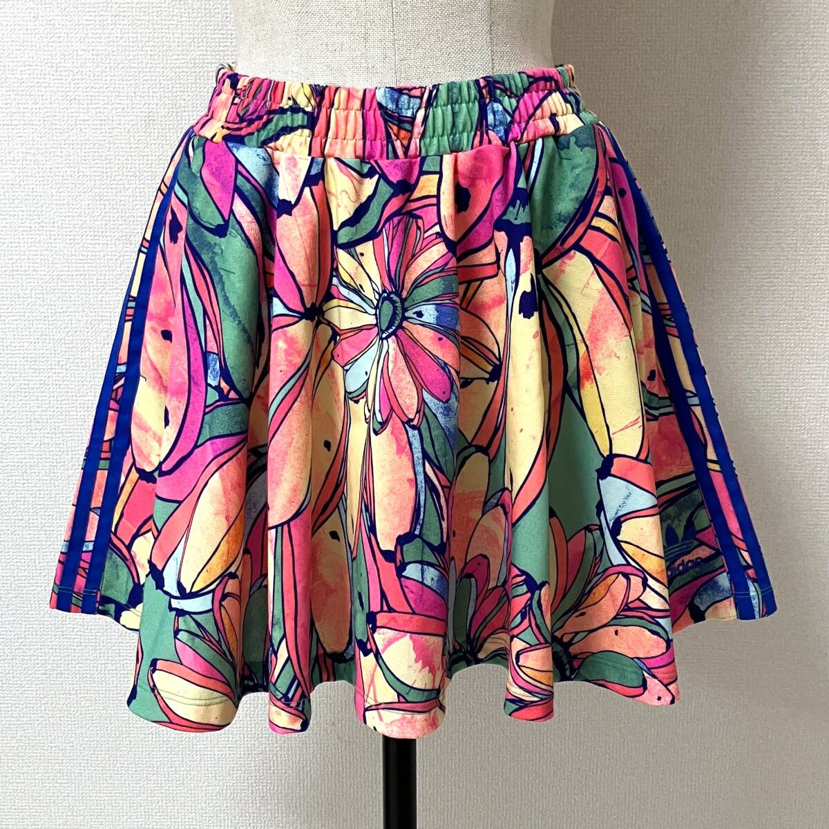- adidas originals マルチ ボタニカル柄 ジャージ素材 サイドライン フレア ミニ スカート アディダス オリジナルス 花柄 ショート 5070412