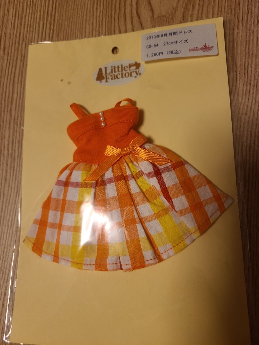> リカちゃんキャッスル リトルファクトリー ジェニー 2013年6月 月間ドレス 27cmサイズ GD-55 オレンジ チェック ワンピース