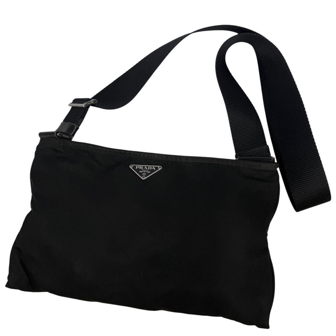 - PRADA プラダ サコッシュ ショルダーバッグ クロスボディ 斜めがけ カバン 三角ロゴプレート ナイロン 黒 ブラック 白タグ LAMPOジップ