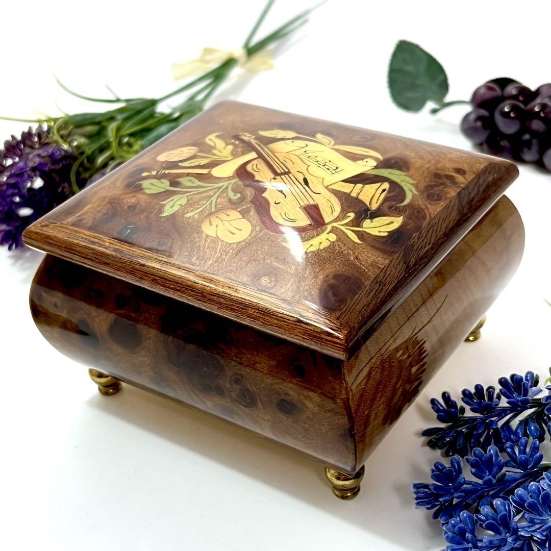 > そ28【箱付き美品】ドイツ製 象嵌オルゴール スイス Romance社ムーブメント 花のワルツ チャイコフスキー German Inlaid Music Box Swiss